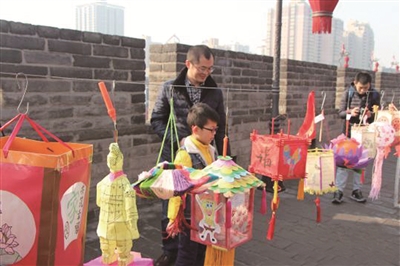 1月8日,西安市百余名小学生来到西安明城墙永宁门,带着自己制作的花灯,共同为新年祈福,也为同龄留守儿童送去一份爱心。西安城墙景区将认购这些“爱心花灯”,并将认购金以优秀花灯小作者的个人名义捐赠给留守儿童,用爱心点亮万家灯火。