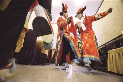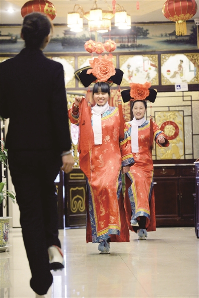 “满汉全席吃的并不仅仅是菜,还有皇家礼仪和用膳流程,包含了满汉饰语。”御膳饭庄厨师长罗艳文说。