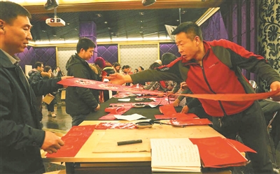 据了解,今年的义写春联文化下基层活动从1月11日持续到1月17日,活动分两个阶段进行,首先从深入到16个镇、街道、委办局和企业,为职工和一线职工家属、劳动模范等义务写春联;最后到工人文化宫多功能厅为城区的职工群众义写春联。据统计,此次活动共计书写了4000余副对联精品、2000帖福字,为广大职工群众献上了一道丰盛的饕餮大餐。