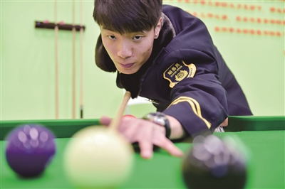 “比赛打得很激烈,进入决赛的选手可以说个个都是高手。”但凭借着高超的球技,范远谋闯进冠亚军争夺战。“比赛的项目叫做‘指袋’,通俗的说就是裁判指定球打进哪个球袋,选手就要照做。”