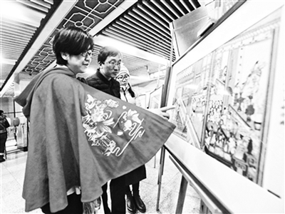 春节前,地铁4号线不但在北宫门站设置了“红楼专馆”固定展馆,还开出了移动的“红楼专列”,更为新奇的是把先进的移动互联网技术和中国名著《红楼梦》巧妙地结合在一起。让乘客既可近距离观看“曹雪芹故居”中的一些复制品,又可通过扫描二维码,免费阅读红楼梦相关电子书籍。乘客还可以参与对春联和猜画活动,让乘车的全过程充满文化气息。