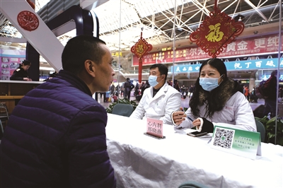 在候车大厅,北京安贞医院心内科医生邢晓燕听取完刘先生叙述的病情后,把治疗建议写在小纸条上交给了他。“我母亲有心脏病,正巧这里有北京大医院的医生义诊,按照专家的指导,回家后我就带母亲看病去。”刘先生说。