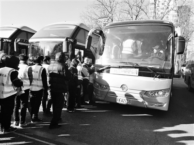 1月20日上午,寒风凛冽。在北京工人体育馆北门,18辆载着农民工的大巴返乡了。农民工们在车内,依依不舍地向送行的人们挥手告别。