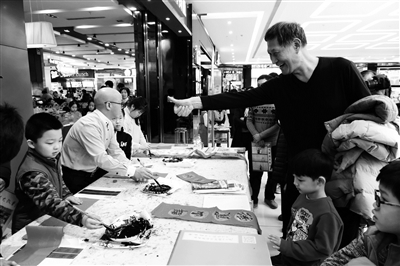 从20日起,由著名书法家萧华创办的书法大教室的数十名师生,在世纪金源购物中心连续三天为市民现场书写春联。这是萧华书法工作室连续8年为市民现场写春联。萧华老师是著名的实力派书法家,目前已经有2000多名青少年从萧华书法大教室毕业,有近500名青少年学员在全国各级书法大赛中斩获大奖。本报记者 周世杰 摄影报道