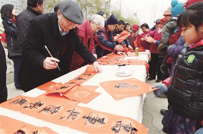 本报讯(记者 马超)近日,中科院文联组织博士生导师、著名书法家辛希孟,中科院美协主席周春民等十几位艺术家到平谷区大兴庄镇周庄子村,开展送春联下乡活动。