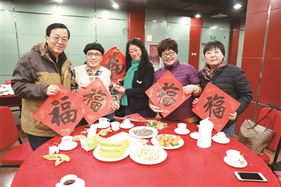 24日,东城区总工会举办2017年迎新春劳模慰问会。活动现场,书法家挥毫泼墨,书写“福”字。东城区委副书记宋铁健,区委常委、区委统战部部长汤钦飞,副区长赵凌云,区总工会主席王彦等将“福”字亲手交到劳模手中。