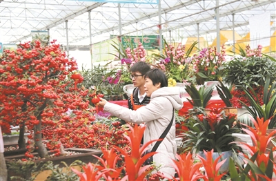 分别从云南和广东运来的马蹄莲和小盆绿植,与荷兰红玉珠和北美冬青比肩丛立在北京世纪奥桥花卉园艺超市里,来自远方的花种与本地花卉“平分春色”。在今年北京各大花卉市场,上千万盆年宵花投入花市,其中北京自产花卉约450万盆。