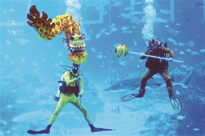 1月25日,在新加坡一家海洋馆内,潜水员表演水中舞龙,庆祝农历新年。 新华社发