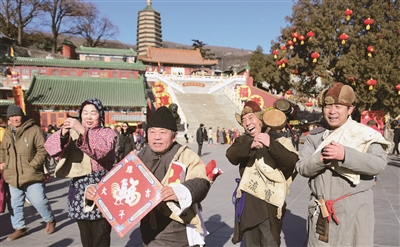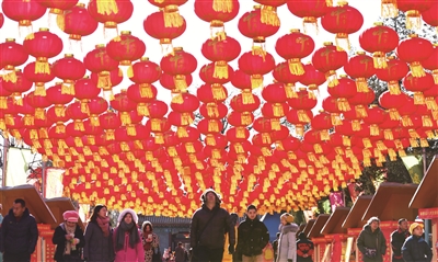 明天就是大年三十儿了,京城处处洋溢着欢乐的喜庆。各单位职工编排文艺节目迎接金鸡报晓;北京的各大庙会装饰一新,准备游人的到来;大街小巷挂红灯、贴春联年味儿更浓,新春的脚步正向我们走来……