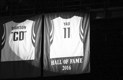 丰田中心球馆的上空,高高悬挂着一排球衣,德雷克斯勒(22号)、墨菲(23号)、马龙(24号)、奥拉朱旺(34号)和汤姆贾诺维奇(45号),这些如雷贯耳的名字,每一个都是休斯顿的一段传奇。而在2017年2月,11号球衣也成为了火箭队封印的号码之一,姚明也迈进了休斯顿的传奇殿堂。