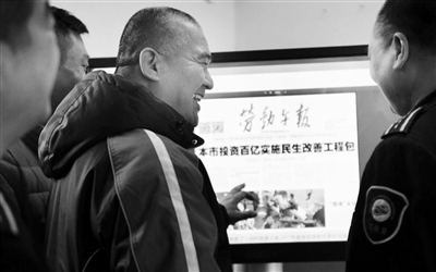 “这回省事儿了,不用翻报纸了,坐屏幕前就把报纸看了!”收班回来的陈师傅看见休息室的大屏幕,乐了。日前,公交377路车队在休息室增加了网络终端,职工通过网络就可以在大屏幕上阅读《劳动午报》、《北京公交报》等报刊,解决了有限的休息时间内,一份报纸几个人抢着看的问题。本报记者 于佳 摄影报道