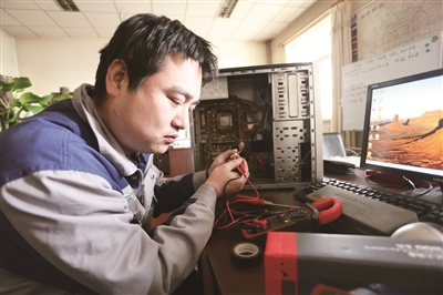 一个周末的下午,清运二中心调度室的电脑坏了,直接影响到了调度员进行第二天的排班,正值周末,维修人员都已经放假回家了,当班调度第一时间打电话给张翀,请求支援,张翀此时正在密云的亲戚家做客,接到电话,二话不说,立即赶到单位,修好了电脑。