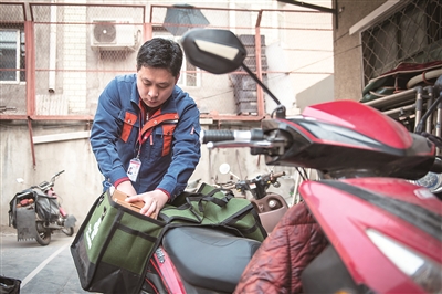 新春伊始上班第一天早上8点, 庞建宁开完早班会,他和同事们领完宽带装机的材料,骑上电动车奔向各个小区开始了一天的工作。