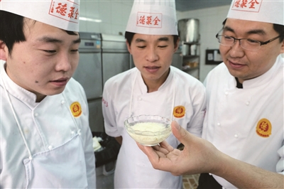 两个月前,全聚德和平门店厨师苑双灏就靠这拿手绝活儿,在北京市商业服务行业技能大赛中力压群雄,夺得了中式烹调师竞赛项目的第一名。“几年来,我们职工在技能大赛中的很多获奖菜品和创新菜都搬上了年夜饭的餐桌。”全聚德集团市场营销部部长王晓珊说。