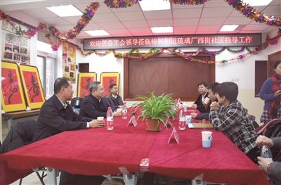 春节前夕,西城区人大副主任、区总工会主席李会增,区总工会副主席程文光等来到椿树街道琉璃厂西街社区慰问社区工作者,并看望慰问了区总工会挂职干部任震宇。椿树街道工委书记高兴春、街道总工会主席郝冬梅等陪同走访。
