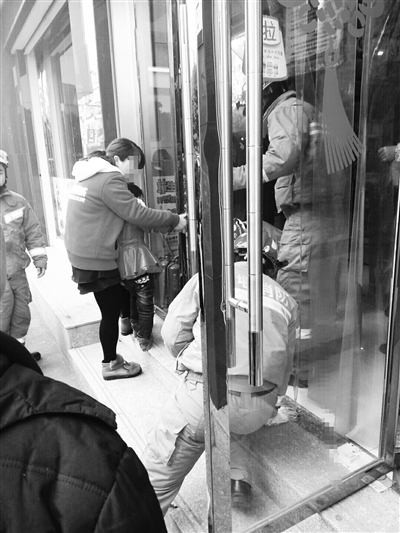 为了松动门框的螺钉,消防战士双膝跪在冰冷的地板上。无论是他们娴熟的救援技术,还是双膝跪地的举动等,都让围观的群众心中如同一团火一样温暖。这时,我们才知道是小朋友出于好奇,把手伸进了门框中,结果才出现了惊险的这一幕。