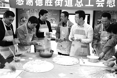 本报讯(记者 陈曦)日前,西城区德胜街道总工会到德胜保洁队开展慰问活动,与春节期间无法回家过年的70余名保洁队员一起包饺子。