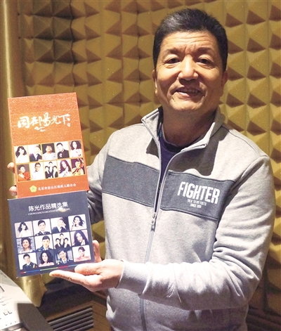 作曲不能憋在家里空想,陈光习惯一年至少出去两次采风,走过全国所有省份。仅2016年,他就去了河北、广西、黑龙江、江苏等地。同年,他的歌曲集《乡村百姓家》在市文联发布,收录了近年来创作的270余首原创作品。房山区还为陈光打造了“五个一工程”,包括一场音乐会、一本词曲作品集、一本音乐作品专辑、一场电视晚会、一个录音棚,以名人效应鼓励更多基层工作者积极投身于文化工作。