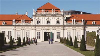 美景宫当时是欧根亲王的夏季住宅,如今为奥地利国家美术博物馆。浓郁的巴洛克式建筑风格,号称是欧洲最美的巴洛克城市建筑群,尤其是连接美景宫上下宫殿的花园,有着极为华丽精巧的雕塑和喷泉。