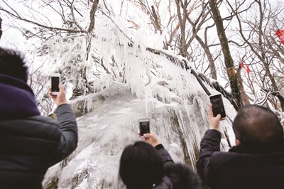 连日来,八百里伏牛山的主峰河南老君山遭遇“过山车”式天气,气温在-8℃~13℃之间大幅波动,2月4日,刚刚遭遇一场大雪后的2000米山峰上,慢慢开始融化的冰雪被瞬间凝固挂于枝头,晶莹剔透成美景,吸引了摄影爱好者。