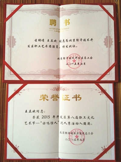 1990年出生的王立欢,2008年就来到了北京,现为住化华北电子材料科技(北京)有限公司的一名职工。同时,他还经过了“亦鸣惊人”达人秀选拔进入开发区职工艺术团声乐队。要说王立欢与唱歌表演结缘,还得从小时候说起。