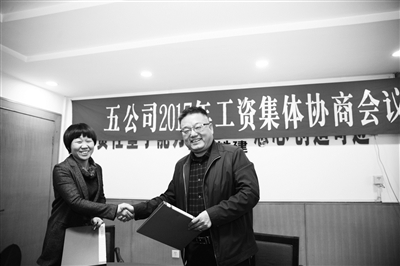 朱卫东说,在当前企业员工总数多、工资水平基准高的情况下,再实现10%的增长确实很困难,但公司两位主管和班子一致认为,工资增长是全员的期盼,也是全员的责任。只要大家齐心协力,提升规模效益,优化管理层结构,兑现绩效考核,对于实现工资增长目标是有信心的。最终,双方首席代表按照10%增长率,签下了《2017年职工工资专项协议》。