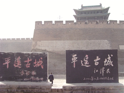 有人曾说:“进了平遥城,银子元宝绊倒人。”走在平遥古城大街上,一栋栋古色古香的庭院以及高大巍峨的市楼,显示着平遥当年的兴旺。在古城墙上,我们随处可见墙缝隙间夹着铜钱、铁钱,据说是当年平遥商人为了加固墙体,并昭显其家族显耀的身份留下的。