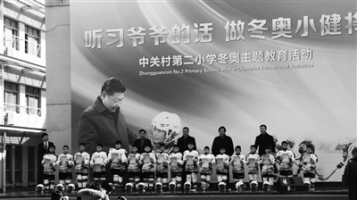 据悉,中关村二小是海淀区首批冰雪项目试点校,已将冰雪运动全面引入校园。昨天,该校授予参加2月24日活动的17名冰球队员“冰球小健将”称号。校长杨刚在致辞中回忆,当时习总书记两次将走却又返身,第一次是与依依不舍的小队员们紧紧握手,撞肩致意;第二次是主动与大家合影留念,让他们非常感动难忘。