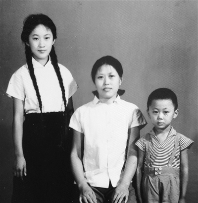 照片拍摄于1974年6月的一天。中间是母亲,左边是我姐,右边是我。