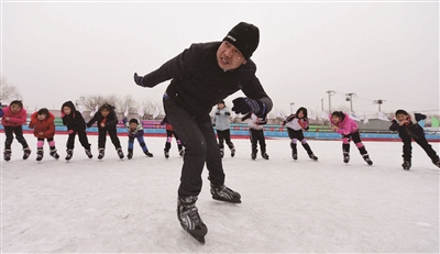 在延庆区太平庄小学的滑冰场上,该校的几个学生踩着冰刀在冰面上“闲庭信步”,虽然采访当日天上飘着雪花,气温很低,但每个孩子通红的的脸上都洋溢着欢快的笑容。学生王磊告诉记者:“我非常喜欢滑冰这项运动,滑冰不仅丰富了我的业余生活,更提升了我的自信心。”据太平庄小学德育主任哈淑英介绍,不仅该校目前全部的在校师生掌握了滑冰技能,在学生的带动下,还有40多名学生家长也学会了滑冰。