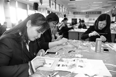 拓图、掐丝、上色、晾干,一件件色彩炫丽的掐丝彩绘作品逐渐呈现眼前。3月6日,朝阳邮政工会“兰心绘制邮美人助女工心灵减压”活动分别以掐丝彩绘和永生花艺为内容,邀请部分女职工参与其中。大家在讲师的带领下,制作了属于自己的掐丝彩绘和永生花艺。本报记者 边磊 摄影报道