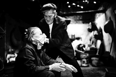 这不由得又使我想起了另一对无儿无女的白发老人。老妻娇小精干,但毕竟到了年岁,背有点驼;老汉腿脚不便,弯腰屈膝,行动十分艰难。老两口依靠自己的双手,在小区里开了一个小卖部。一天傍晚,我见他们老两口正步履蹒跚地在清点货物,一起盘算着当天的收益。老汉嘴里还不时地哼着小调,只听老妻笑吟吟地打趣老汉:“老头子,今天生意不错,晚上你又可以喝两盅了!”老汉听后,乐得合不拢嘴。