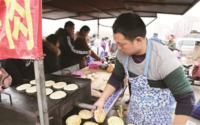 80后张武杰毕业后在山西运城一民办中学当老师,爱人是公办学校的老师,有孩子后他觉得日子过得有点紧。两年前他辞掉了工作,来西安卖肉夹馍。张武杰以卖早点为主,附近逢集的日子他就去赶集,一月下来收入近万元,比当教师翻一番。