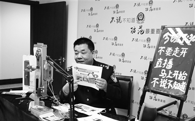 他们设计了宣传海报,充分准备直播场所、内容等,并通过“房山警方在线”微博微信平台做了预热宣传。1月13日,大讲堂开始了网络防范宣讲首次直播,“不说不知道 防范最重要”的主题很快就吸引了大批网民,直播不到10分钟粉丝就突破了1万,最高峰达到了11.8万人在线收看。刘春由此成为全国首个民警主播,成了名副其实的“网红”。“既要亲民,又得有警察的形象和专业度,这是对我最大的挑战。”刘春说,不同于线下的宣传,直播面对的人群更广泛,影响也更大,“如何和粉丝更好地互动是思考的问题。”