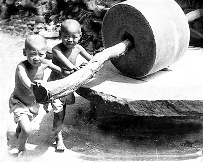 七岁那年,我和狗蛋在碾盘上玩“摆方”游戏,结果狗蛋输了,要悔子,我不同意,狗蛋就恼了,把我的棋子给扔了。我也很生气,不让他在碾盘上玩耍,因为碾子是我们家的。我们俩就这么不欢而散。好长时间,我们俩都互不搭理,即便在路上遇见了,也视而不见。而我,每一次吃午饭的时候,都要把碗端到碾盘上去吃,因为那里是村里的饭场,在那里可以听到好多有趣的故事,更主要的是,可以监督狗蛋,不让他在我们家的碾盘上坐,谁叫他惹我呢!