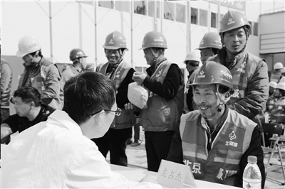 近日,北京城建亚泰集团在城奥大厦项目举办了健康咨询义诊志愿服务活动。图为北京武警总医院胸外科副主任左占杰等专家为农民工兄弟进行现场义诊,并讲授了工地常见医疗救护知识以及常见疾病的防治等。通讯员 谢文波 摄影报道