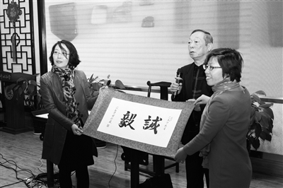 金毓岚先生热心公益事业,先后捐献藏品文物500多件。当天,金毓岚从自己与收藏的缘分说起,畅谈对收藏、教育和人生的理解,他说收藏不仅是一种爱好,更是一种文化的传承,还向学校赠送了自己的墨宝“诚毅”。