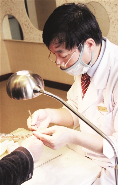 2004年,李金明就已经熟练地掌握了嵌甲、灰指甲、滑囊炎、瘊子、足跟炎等病症的治疗方法,考取了劳动部门颁发的修脚师职业资格证书,正式成为修脚师。如今,他更是成为清华池修脚师中的一块响当当的招牌人物。