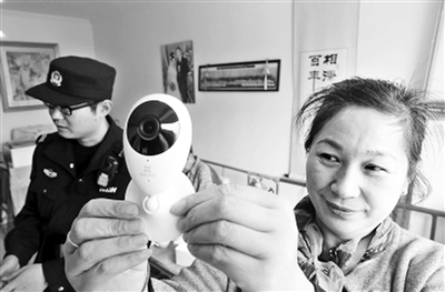 近日,南苑街道为辖区高龄、残疾、孤寡等200户弱势群体家庭免费上门安装网络摄像机,让家庭成员通过手机就可远程监护,及时了解老人在家的生活,遇有紧急情况可以及时处理。图为社区居民展示网络摄像机。(3月22日《北京日报》)