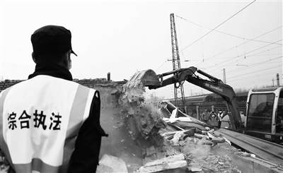 昨天,丰台区南苑街道组织派出所、城管、工商等部门,对公益庄铁路沿线的1200余平方米违建依法进行了拆除。同时,打响了治理拆违的攻坚战,年内将拆除辖区内25000余平方米违法建设。据了解,公益庄铁路沿线违建已有十多年,房屋权属复杂类型多,违建用途多为无照小发廊、洗浴店、小商店以及散居住人等,存在人员管理难、环境卫生差、治安隐患大等问题,群众拆除愿望强烈。