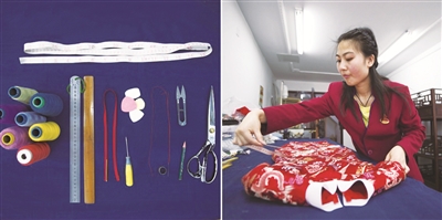 “瑞蚨祥的很多老主顾,如今大多都是冲着我们店里的传统盘扣手艺和花样而来的。听邹老师讲,要想完成一个复杂的盘扣,做一对就需要4天的时间,一件旗袍上怎么也得有四五对扣子,这样算下来,少说也得半个月,是名副其实的慢工出细活儿。”张冰晶说。