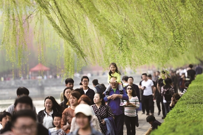 清明时节,北京城内及周边百花齐放,桃花、樱花、海棠、玉兰、丁香、梨花……应有尽有。人们纷纷走出家门,到大自然中去享受温暖的春光。