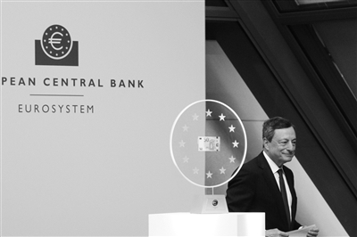 4月4日,在德国法兰克福,欧洲央行行长德拉吉出席新版50欧元纸币流通启动仪式。欧洲中央银行发行的新版50欧元纸币4日正式开始流通。 新华社发