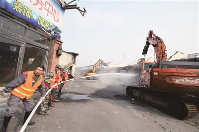 昨天,石景山区启动对西五环外融景城西部片区30万平方米违建和低端市场的疏解,面积达7万多平方米的汽车配件园率先拆除,拆除后的土地将进一步规划,用于居住用地和绿化用地。