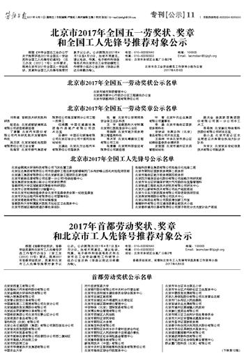 2017年首都劳动奖状、奖章 和北京市工人先锋号推荐对象公示