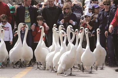 近日,加拿大安大略省斯特拉特福市举行一年一度的“天鹅大游行”。活动吸引上千民众齐聚这座以英国文豪莎士比亚的出生地命名的小城,迎接春天的到来。