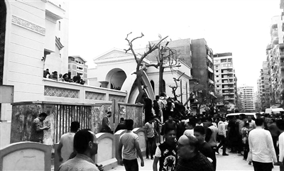 4月9日,在埃及北部城市坦塔,当地民众聚集在爆炸现场。据埃及卫生部消息,位于埃及北部城市坦塔的一所教堂9日发生爆炸,造成至少21人死亡、50人受伤。 新华社发