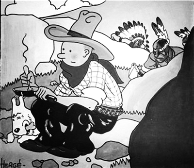 这幅单页插图为比利时漫画家埃尔热1937年所作,尺寸为21厘米×15厘米,是当年出版的《丁丁在美洲》中的4张单页插图之一,最初估价为60至70万欧元。