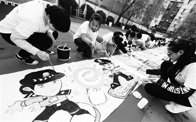 4月9日,来自丰台区180名青少年儿童代表齐聚丰台区少年宫(东区),参加“小手拉大手 共创文明示范区——‘我心中的文明’”丰台区青少年儿童百米长卷绘画活动。