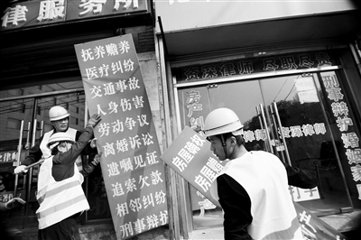 “由于临近东城区法院,安定门交道口北头条等胡同中,有不少开墙打洞的房屋是法律咨询的小门店。此次整治行动中,有11家法律咨询点得到整治。对于执业资格和经营条件符合规定的法律咨询点,街道将进行建筑立面恢复,消除安全隐患。同时,街道将联合司法所、东城区律师协会等部门加强对法律咨询服务的监管力度。”综合执法组主任胡云说。
